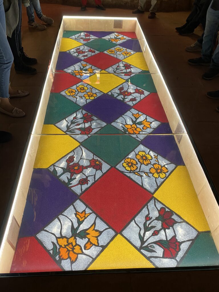 Några av de unika mattorna från den tiden har limmats upp på stora plattor, som nu kan ses på Museo de Alfombras de Serrín i den lilla stadens centrum. På museet hittas också de enorma burkarna som fortfarande används när sågspånen ska färgas.