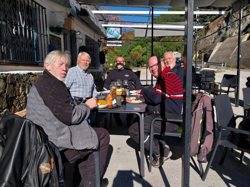 Fem hojar och killar med vikingablod i ådrorna startade den något kyliga vinterturen, den sista för 2023. Färden gick i nordvästlig riktning genom Coín och mot det första raststället som låg en bit väster om El Burgo efter väg A-366. Här finns en fin rastplats med bänkar och utsikt över den lilla byn Jorox.