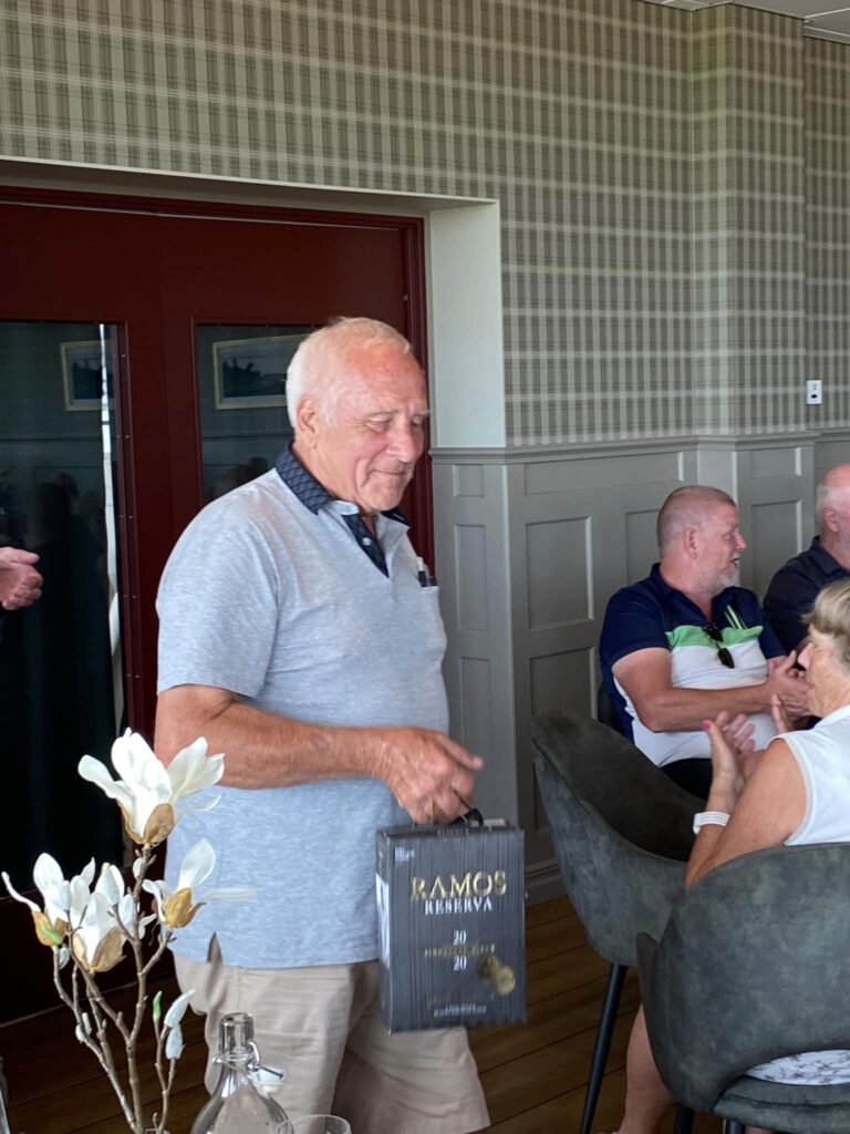 Lyckosam ålderman, Billy Nilsson: Vår tidigare tävlingsledare på Lauro är ”still going strong”. Med sina 91 år var han vår äldste deltagare, som i tombolan fick ett välförtjänt pris, applåderat av samtliga.